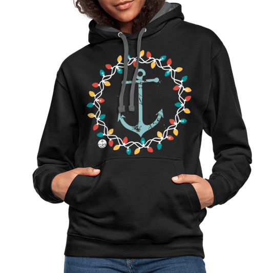 Anchor Christmas Wreath Contrast Lake Hoodie